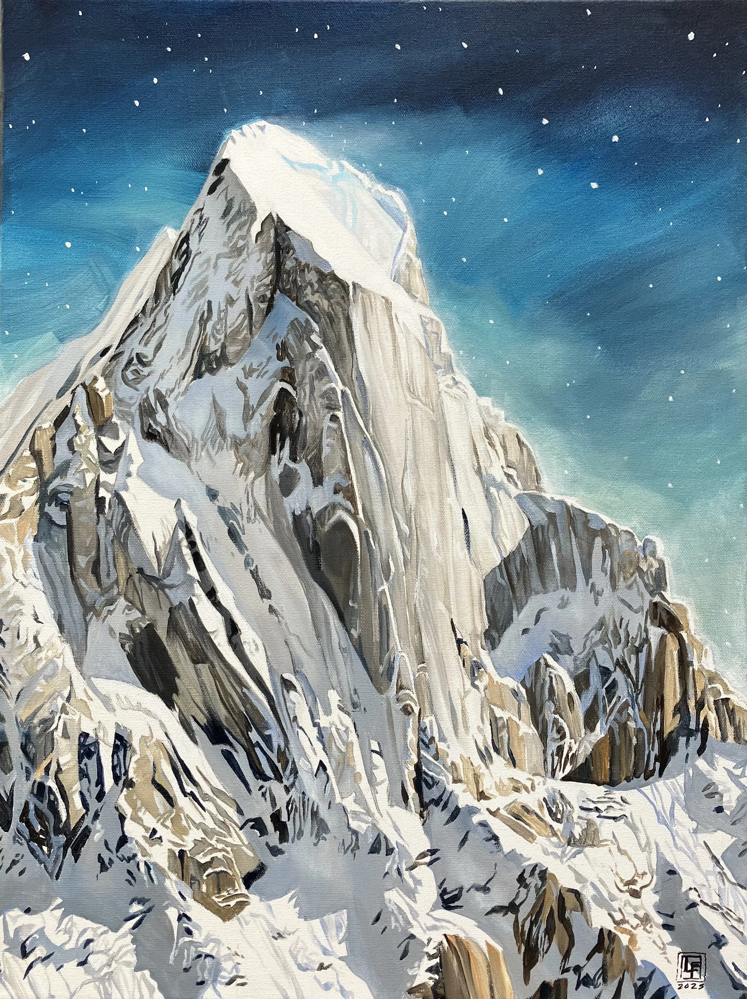 The Yentna Glacier The Sphynx Denali The Shining Mountain The Moonflower Buttress The Great Gorge Kitchatna Spire Winter Winds Rake the Broken Tooth The Mooses Tooth The View From the Root Canal Evening at the Gargoyle Mount Pontoon Unnamed Spines no. 2 Unnamed Spines no. 1 The Grand Teton Cerro Torre Meteorite Mountain
